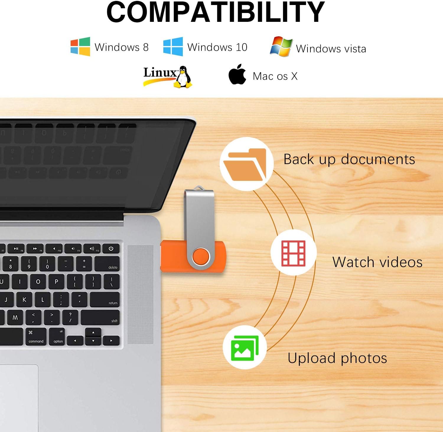 - Interface: USB 3.0. Plug and work, no need to install any software, just simply plug into the USB port of computer or other devices and use it! It support windows 7 / 8 / 10 / Vista / XP / 2000 / ME / NT Linux and Mac OS, Compatible with USB 3.0 and 2.0 Ports. It works with virtually any computer or electronic device with a USB slot, this flash drive lets you leave your laptop at home, but still take your vast amounts of content to share with family and friends.