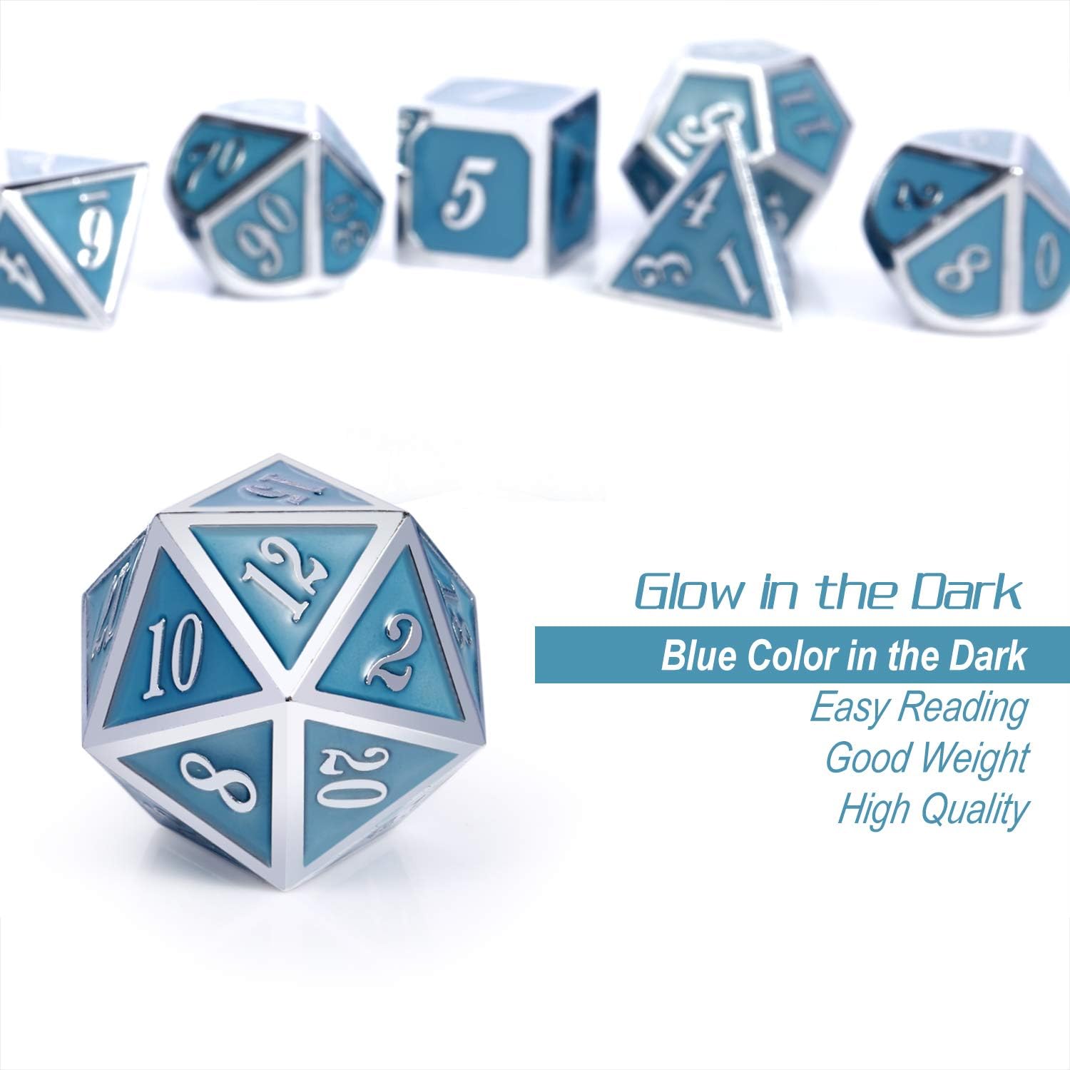 DnDnD Glowing DND Metal Dice Set,Luminous Blue Metal Dice for Role Playing Game Dungeons and Dragons RPGs and Other Table Games