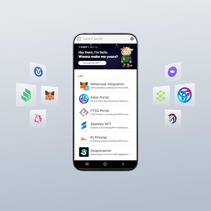 - EFFORTLESS MOBILE USE WITH BUILT-IN CRYPTO SWAPPING - Seamlessly connect to the D’CENT mobile app via Bluetooth. Easily swap crypto assets directly within the app, manage tokens, and interact with Web3