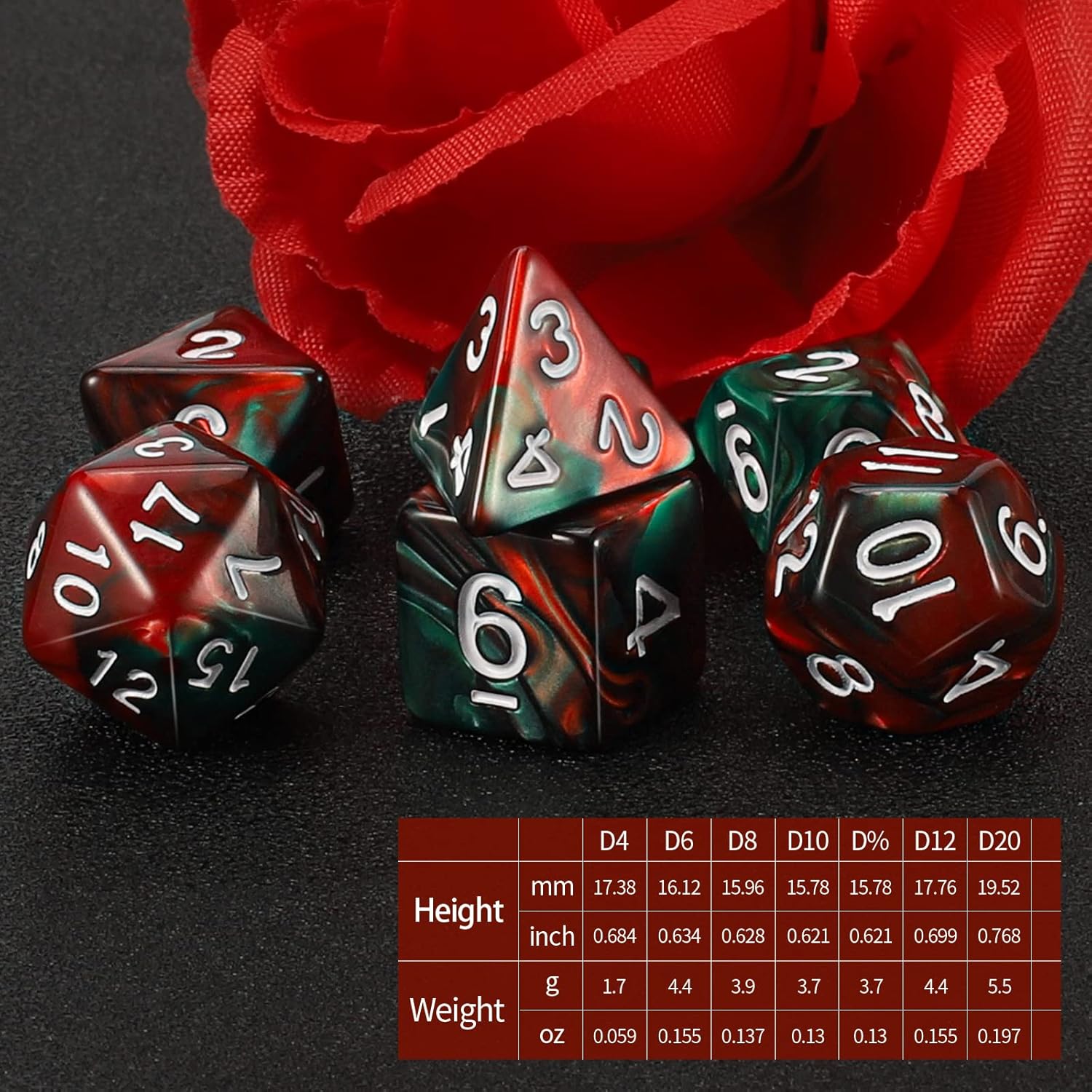 QMAY DND Dice Set - Polyhedral Dice (Red Mix Green) 7 Pcs for Dungeon and Dragons D&D RPG Role Playing Games Dice with Dice Bag