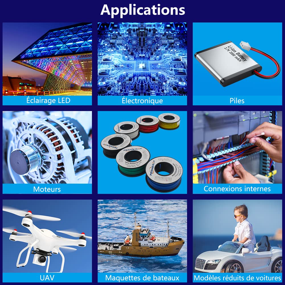 - Application-Fermerry silicone wires are widely used in LED lighting, electrical and electrical equipment, aluminum batteries, RC batteries, model wiringz harnesses, instrumentation internal connections, large transformers and motors connecting equipment with wires,etc