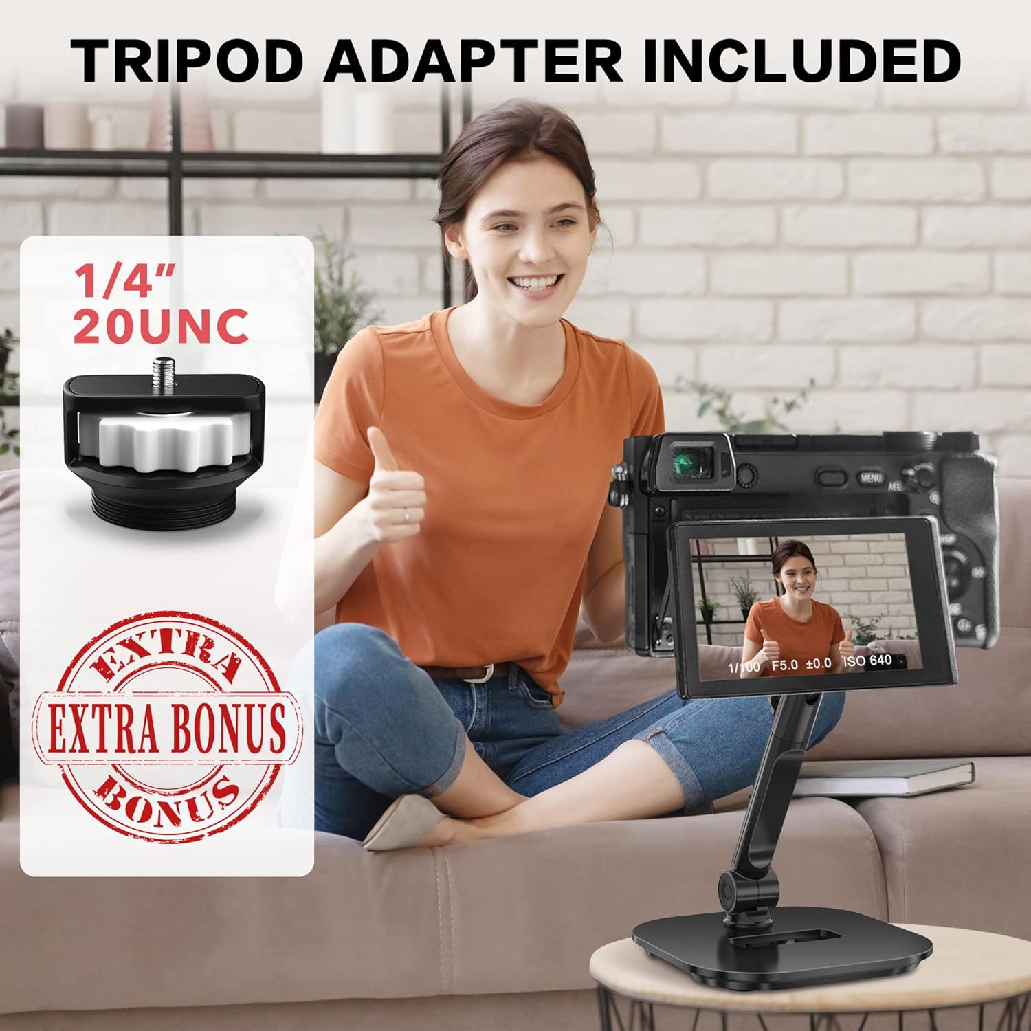 - 【Wide Application】Work as iPad stand for home office or smartphone stand for iPhone. Come with 1/4 '' Screw camera adapter is fully compatible with DSLR with small lens, sports camera, digital camera. Adjusting tightness of the arm base with included hex wrench ensures unparalleled stability.