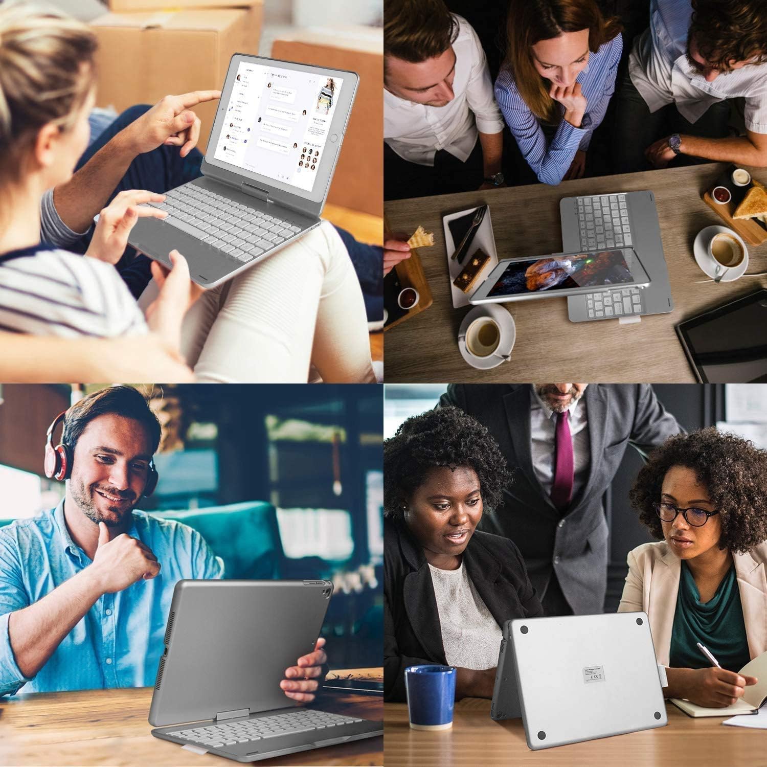 - 360 DEGREE ROTATE&180 DEGREE FLIP----- 360 Degree Rotation and Multi-Angle Adjustments to Meet Your Visual Needs. Support 180 Degree Flip, easy to flip the tablet over, Convenient to your life, change your tablet to small Macbook in seconds.