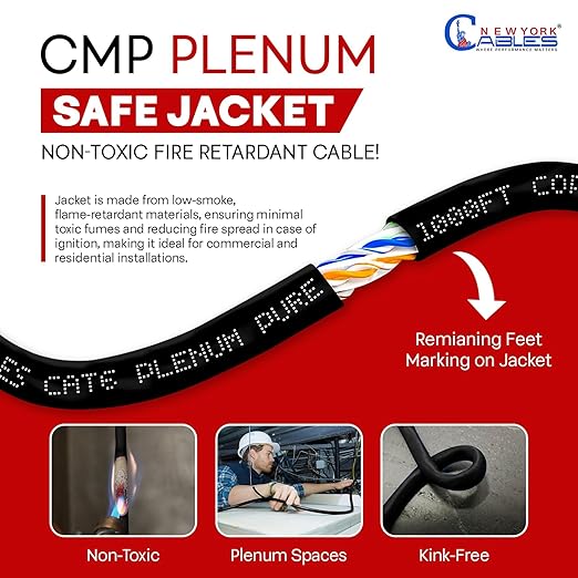 - š¢ ššš š šššššš-ššššš ššš šššššš: Designed for plenum spaces, this fire-retardant, UV-resistant, and sunlight-resistant CMP jacket meets strict safety codes for air ducts, drop ceilings, and raised floors. Ideal for commercial buildings, offices, and homes needing a Cat6 plenum pure copper Ethernet cable that delivers durability, compliance, and long-term reliability in any indoor networking environment.