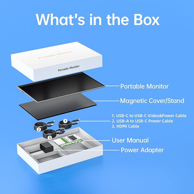 - True Plug-and-Play via USB-C: Designed for seamless connectivity, the monitor supports one-cable video and power transfer for Thunderbolt 3/4/5 laptops and USB-C devices with Full-Function USB-C ports (DP Alt Mode)—no drivers required. Built with precision aluminum alloy and strict quality control, it measures just 0.24 inches at its thinnest point and weighs only 1.4 lbs (2.3 lbs with cover), making it an ideal companion for mobile productivity, travel, and presentations.