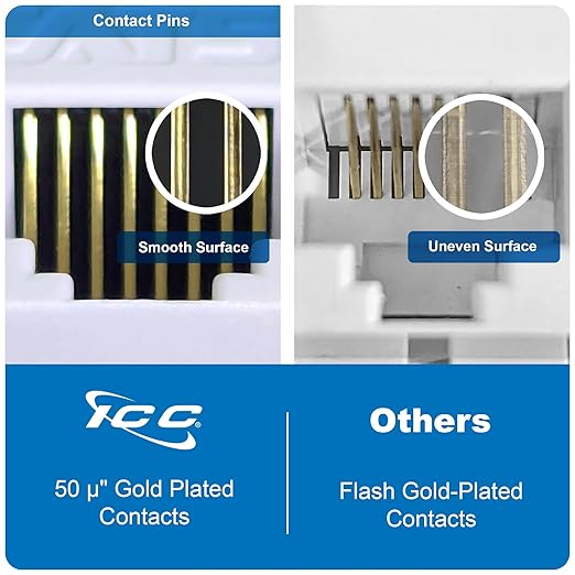 - FAST 4-PAIR TERMINATION: Built to work with ICCβs JackEasy 4-Pair Termination Tool (SKU ICACSPDTEH), enabling termination of all four pairs in a single squeeze. Features phosphor bronze alloy IDC pins, designed to withstand 100+ re-terminations for reliable and durable performance. Supports over 750 plug-to-jack insertion cycles for extended usability, with compatibility for RJ45 (8P8C) patch cables.