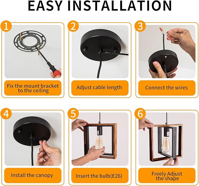 - ADJUSTABLE AND IMPROVEMENT : The pendant light fixtures, Improve the height adjustment method,it will easily to adjust the hanging height and installaion ,just need a srewdriver is ok and Sloped ceiling adaptable.