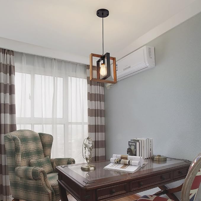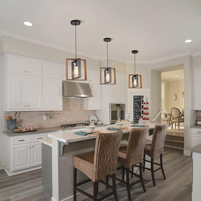 - DESIGN: The kitchen island light is made of solid Wood and Matte black metal frame,The soft ambient light over your house and provide a warm ambiance.
