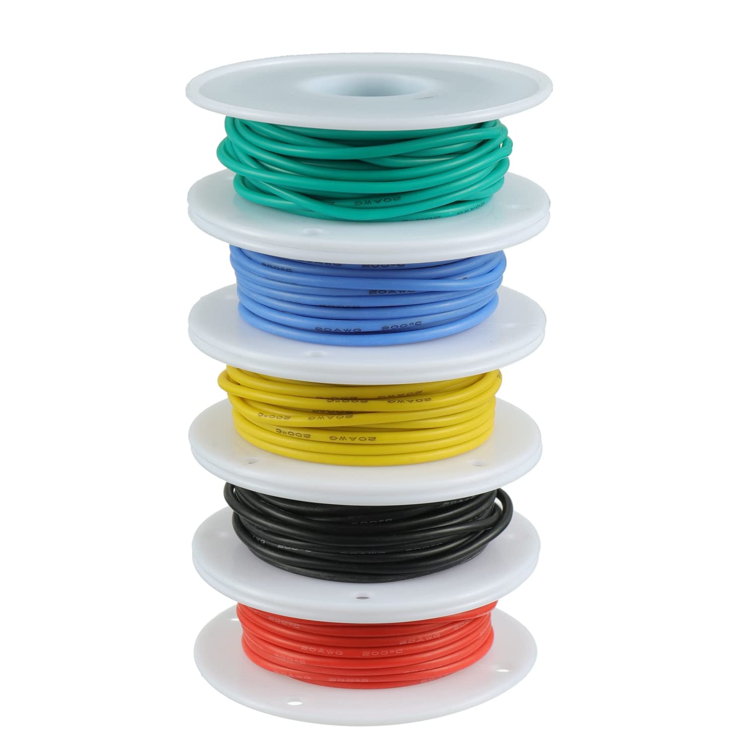 - Package Include:20 Gauge Silicone Stranded Wire 19.69ft of Each 5 Different Colors (red, black, yellow, blue, green), total 98.45ft With plus 20 φ3mm Heat Shrink Tubings(5 Colors 5pcs Each Color) and a Mini wire stripper