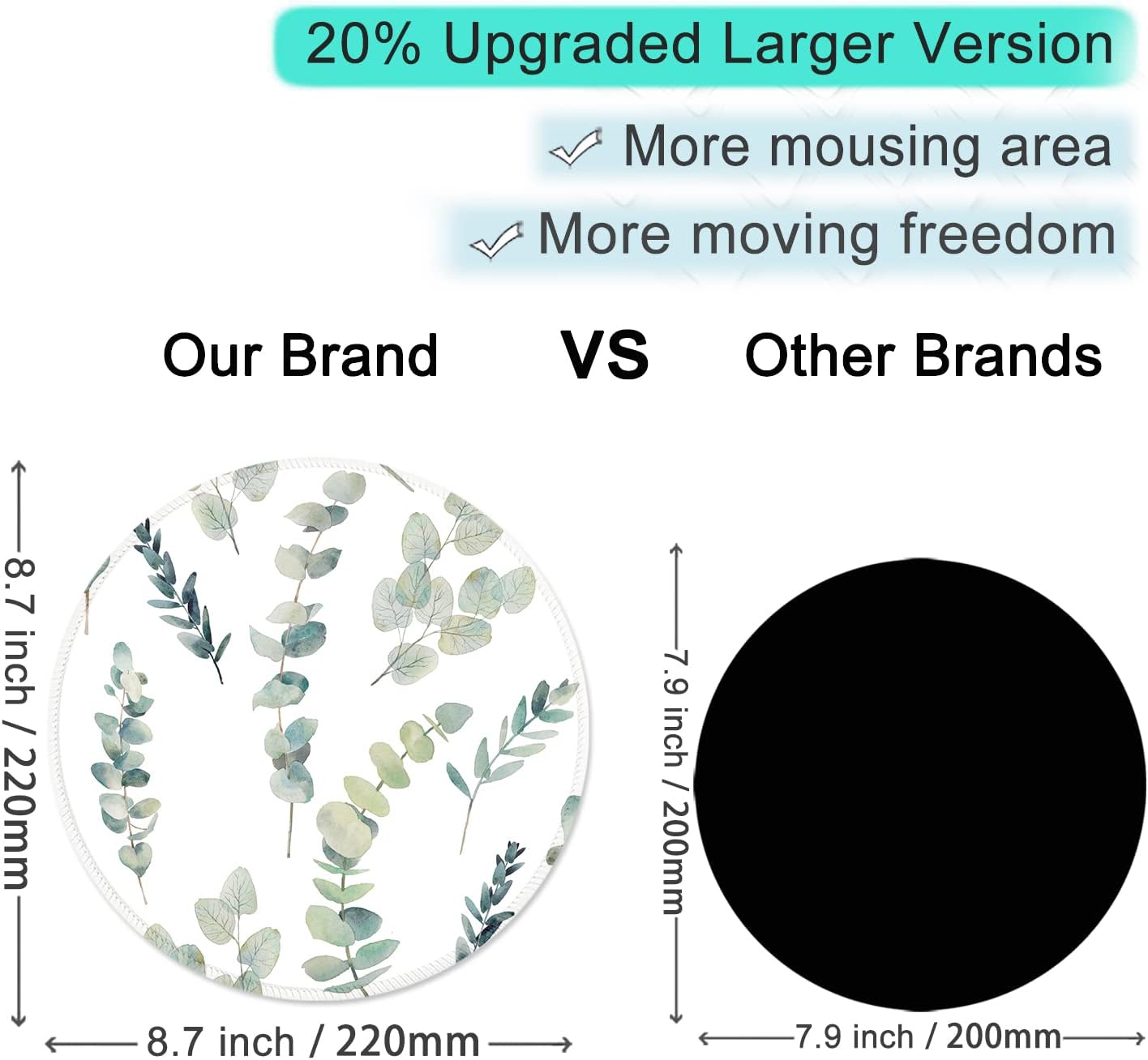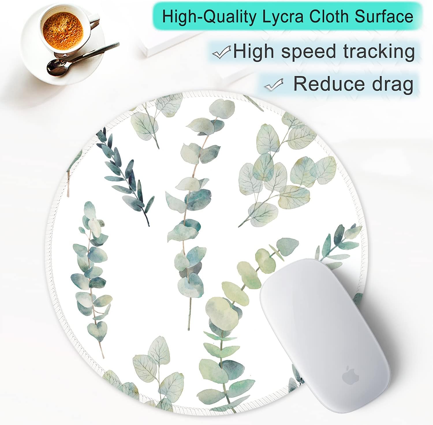 ITNRSIIET Round Mouse Pad with Stitched Edge Premium-Textured Waterproof Non-Slip Rubber Base Desktop Protection Mat Diameter 8.7 inches, Eucalyptus Branches