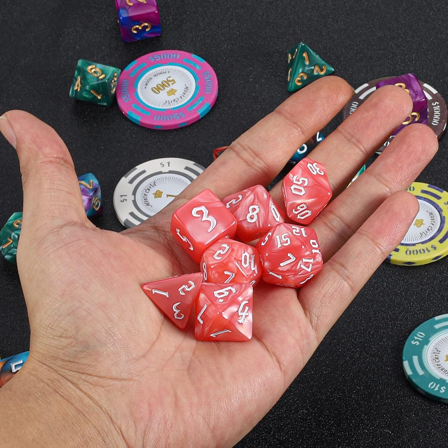 QMAY DND Dice Set -D&D Polyhedral Dice (7 Pcs) for Dungeons and Dragons (Pink and White)
