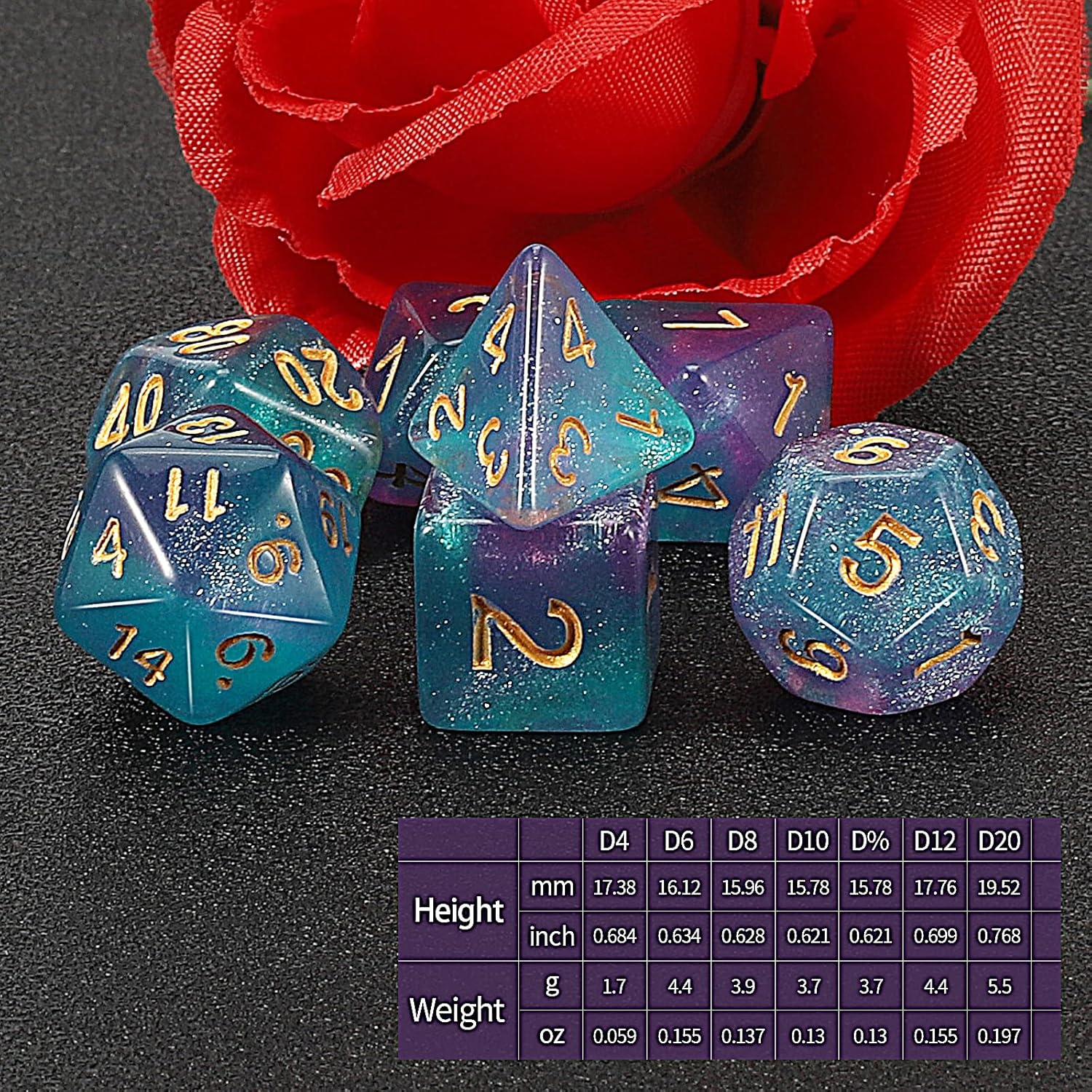 QMAY DND Dice Set -D&D Polyhedral Dice (7 Pcs) for Dungeons and Dragons (Purple Light Blue Glitter)