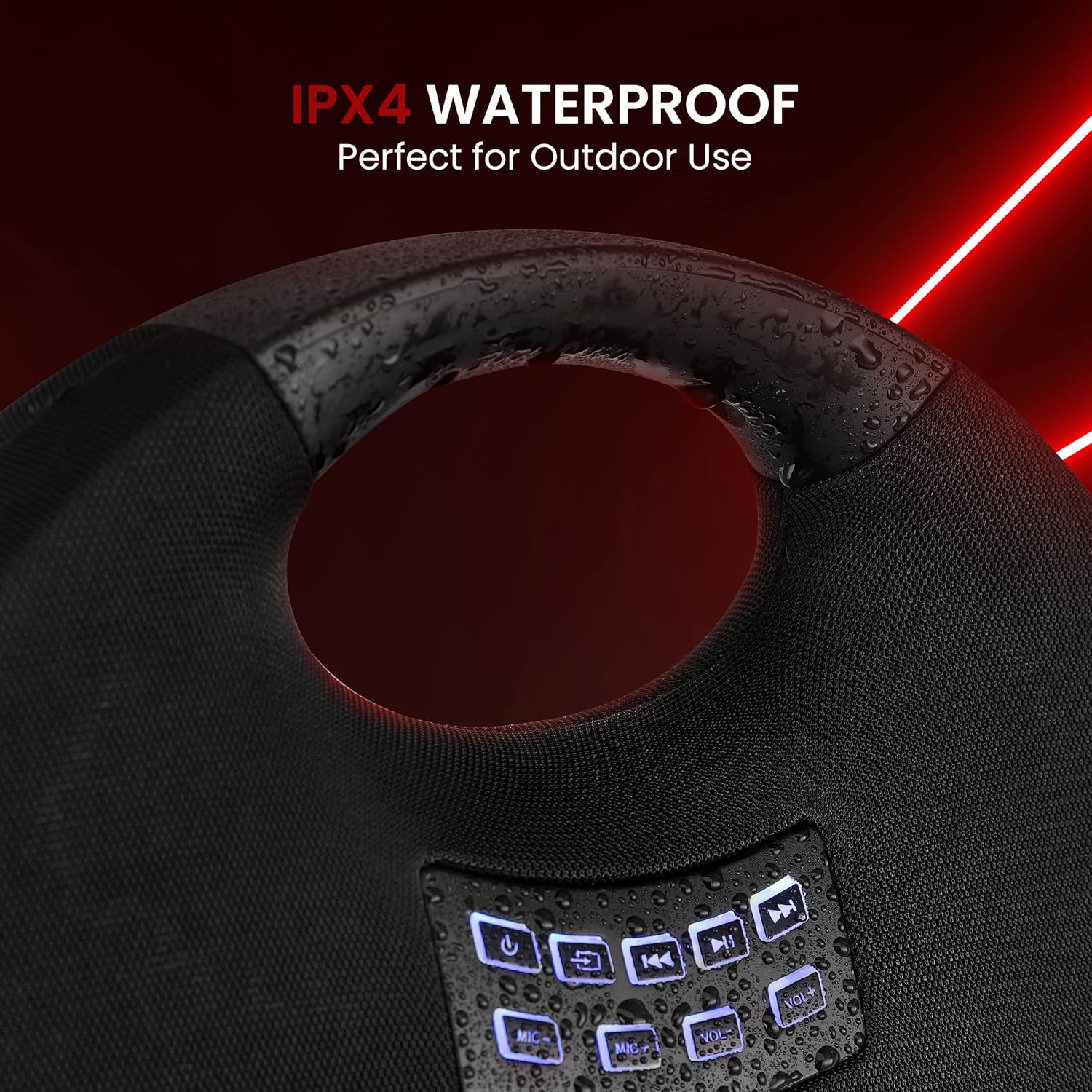 - IPX4 WATERPROOF: Fully wrapped design with IPX4 waterproof makes it not afraid of water. Play music at ease during outdoor activities or beach vacation. You are never alone to sing in the shower with our Bluetooth speaker