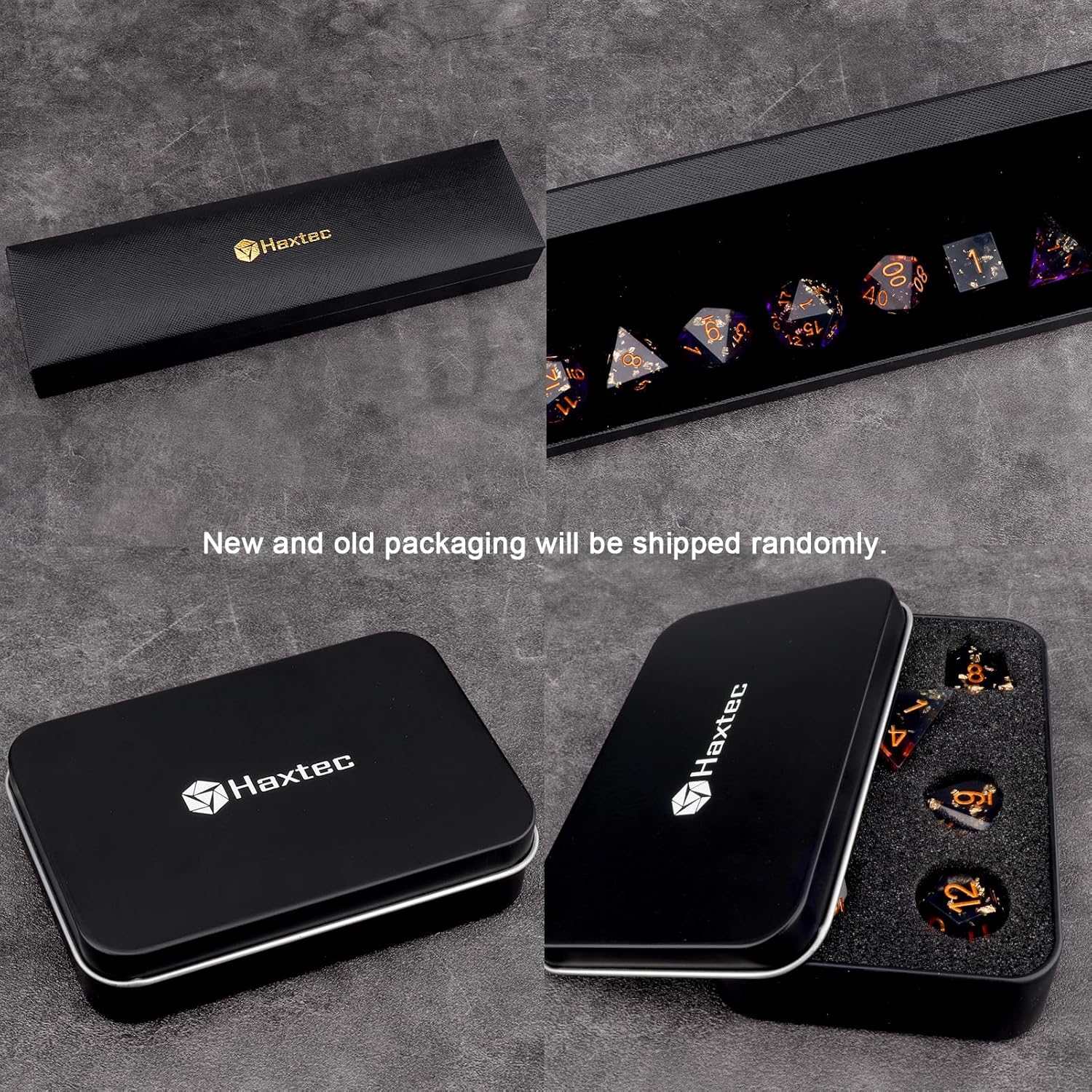 Haxtec DND Dice Set Sharp Edge Resin Dice with Dice Case Purple Black D&D Dice for RPG Role Playing Games Compatible with Dungeons and Dragons Gift War Series