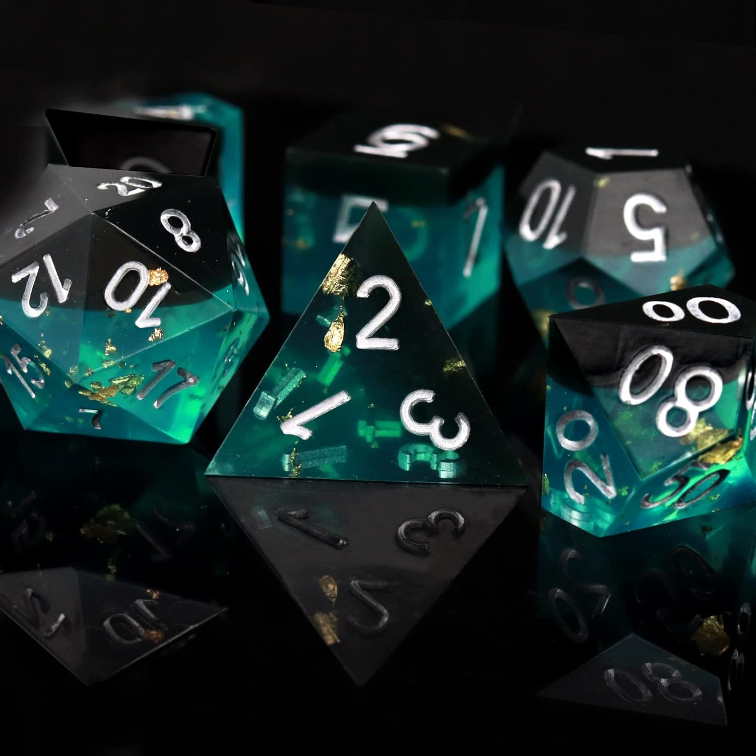 - Sharp Edge Dice & Mirror Look: 7PCS rpg dice set with sharp edges and mirrior level smooth surfaces.