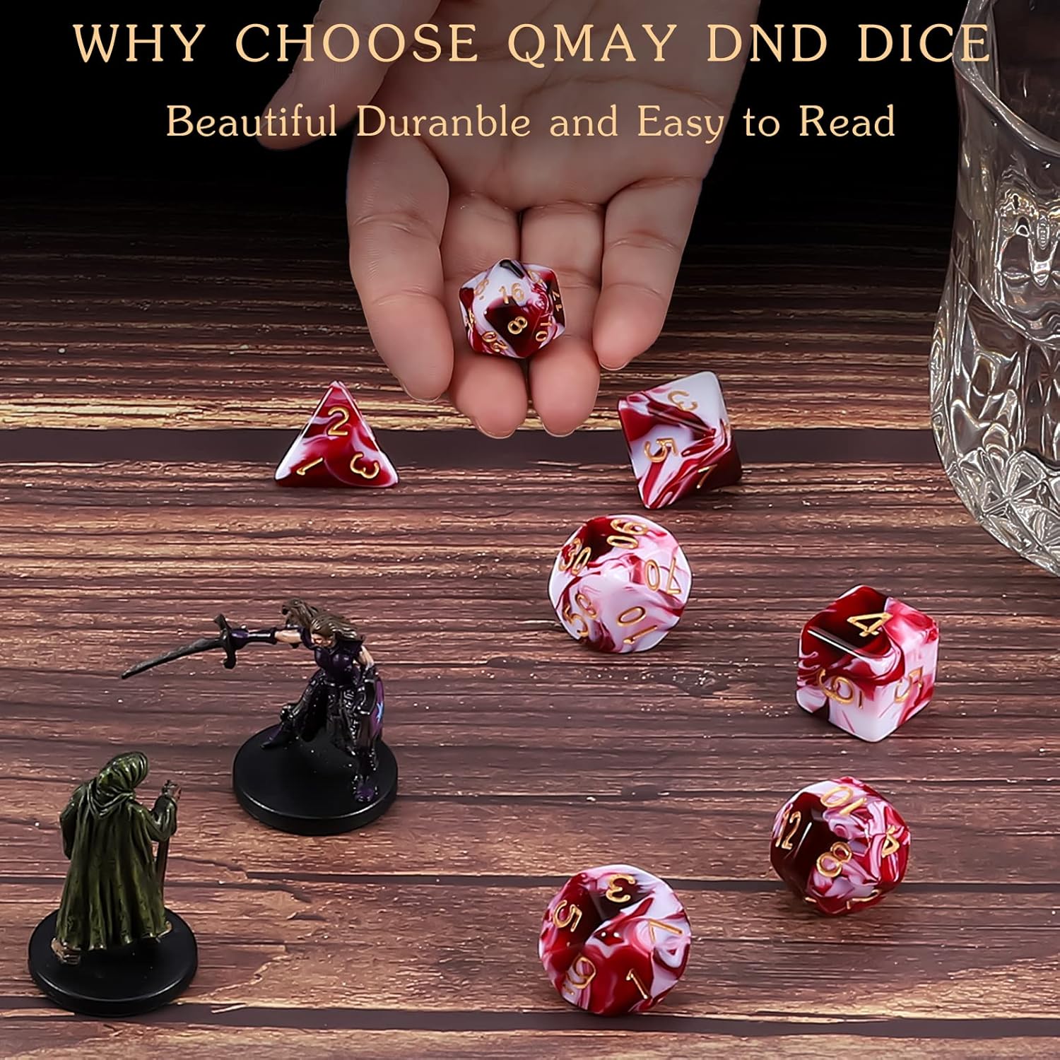 QMAY DND Dice Set -D&D Polyhedral Dice (7 Pcs) for Dungeons and Dragons (Blood red and White)