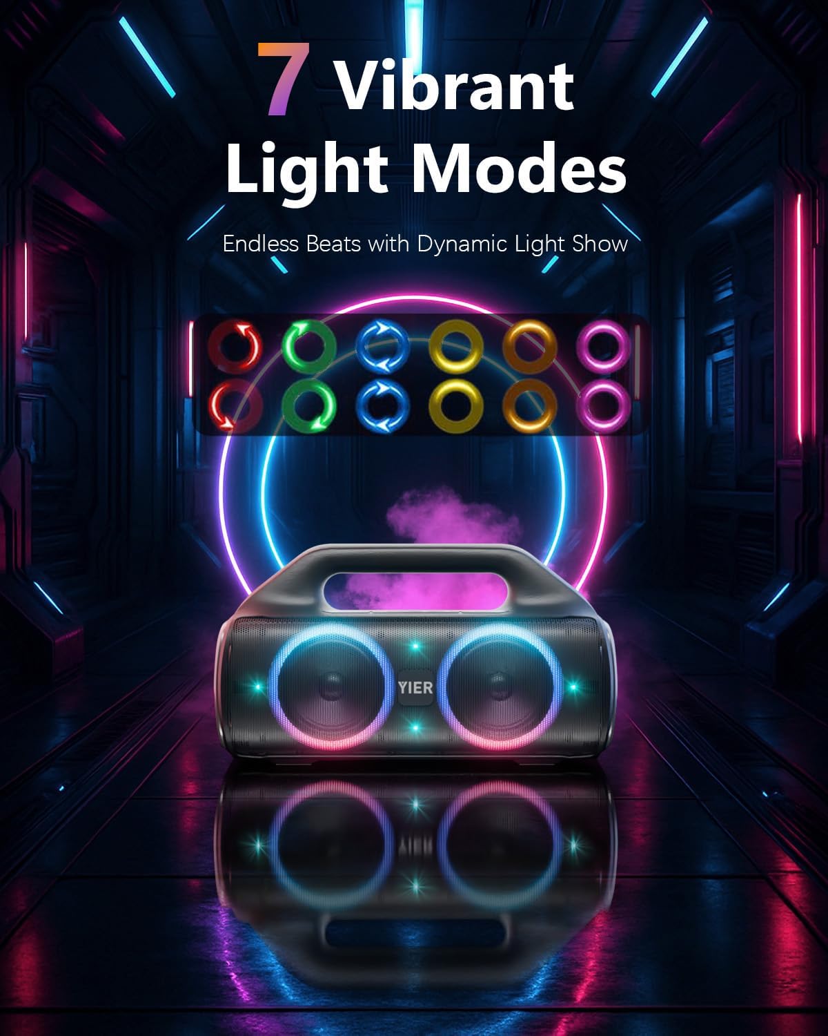 - 【TWS Stereo Surround and Light Show】Pair 2 of YIER Bluetooth speakers with lights to get the TWS function and a fully immersive and spatial audio experience. Also, the light show of speakers bluetooth wireless is crazy, it is a brand new beating mode, occupy your field of vision, light up the fiery party, and push the passion to a new level.