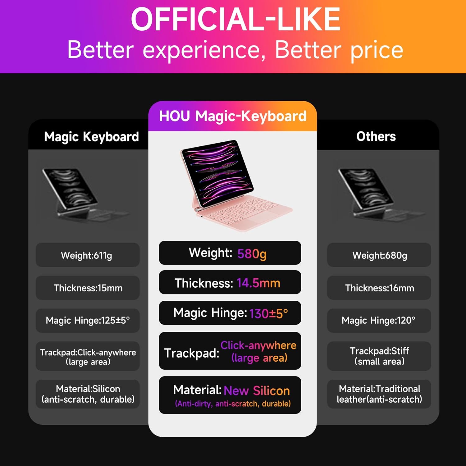 HOU Keyboard Case for iPad Air 11 inch 2025 (M3)/2024 (M2)&iPad Pro 11 Inch(4th/3rd/2nd/1st) Gen 2022,iPad Air 5th&4th Generation Case with Keyboard,Magic-Stand, Multi-Touch Trackpad,Backlight,Pink