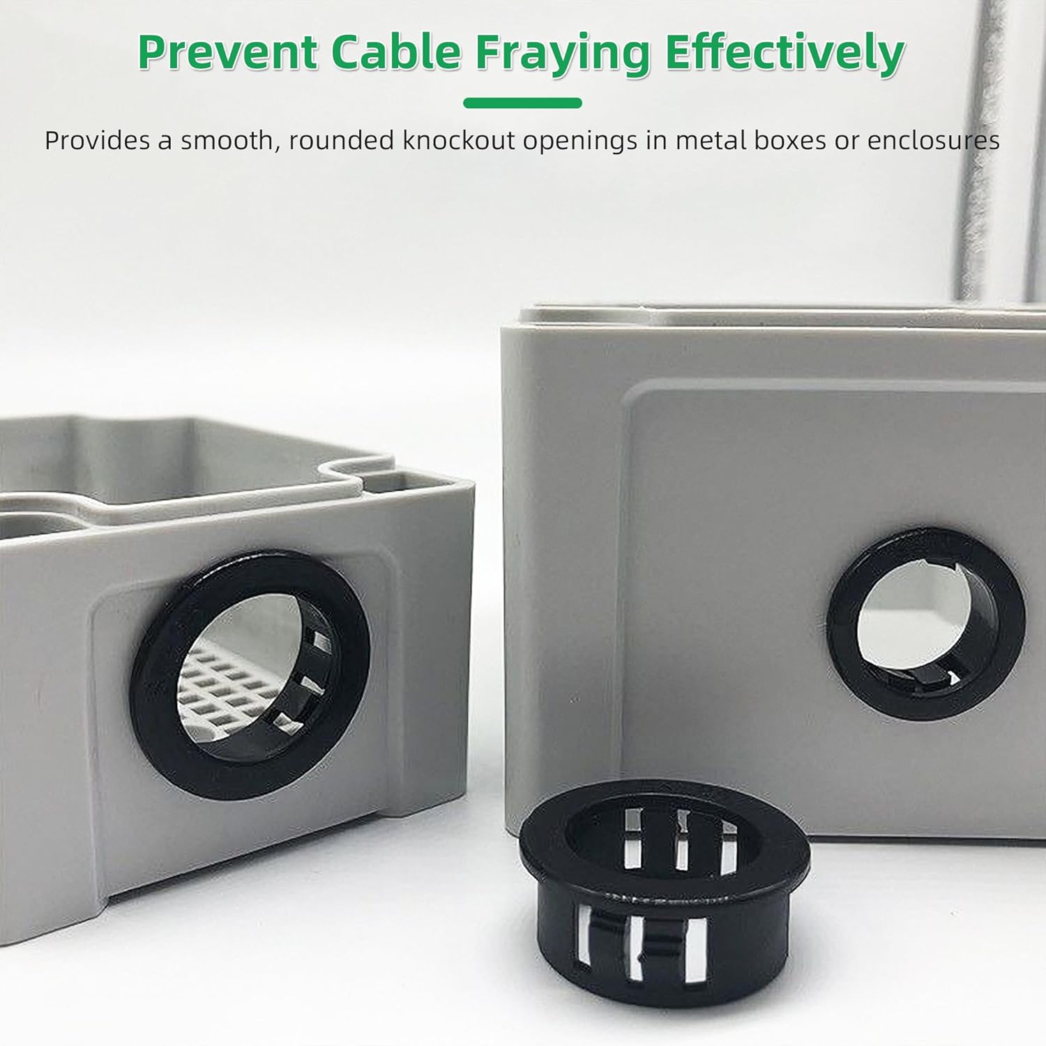 - VERSATILE APPLICATION: Snaps into electrical outlet box, switch box metallic box or other enclosure; Our wire bushing provide insulation and mechanical protection for electrical and telecommunication cables in most residential, industrial, automotive equipment and machinery