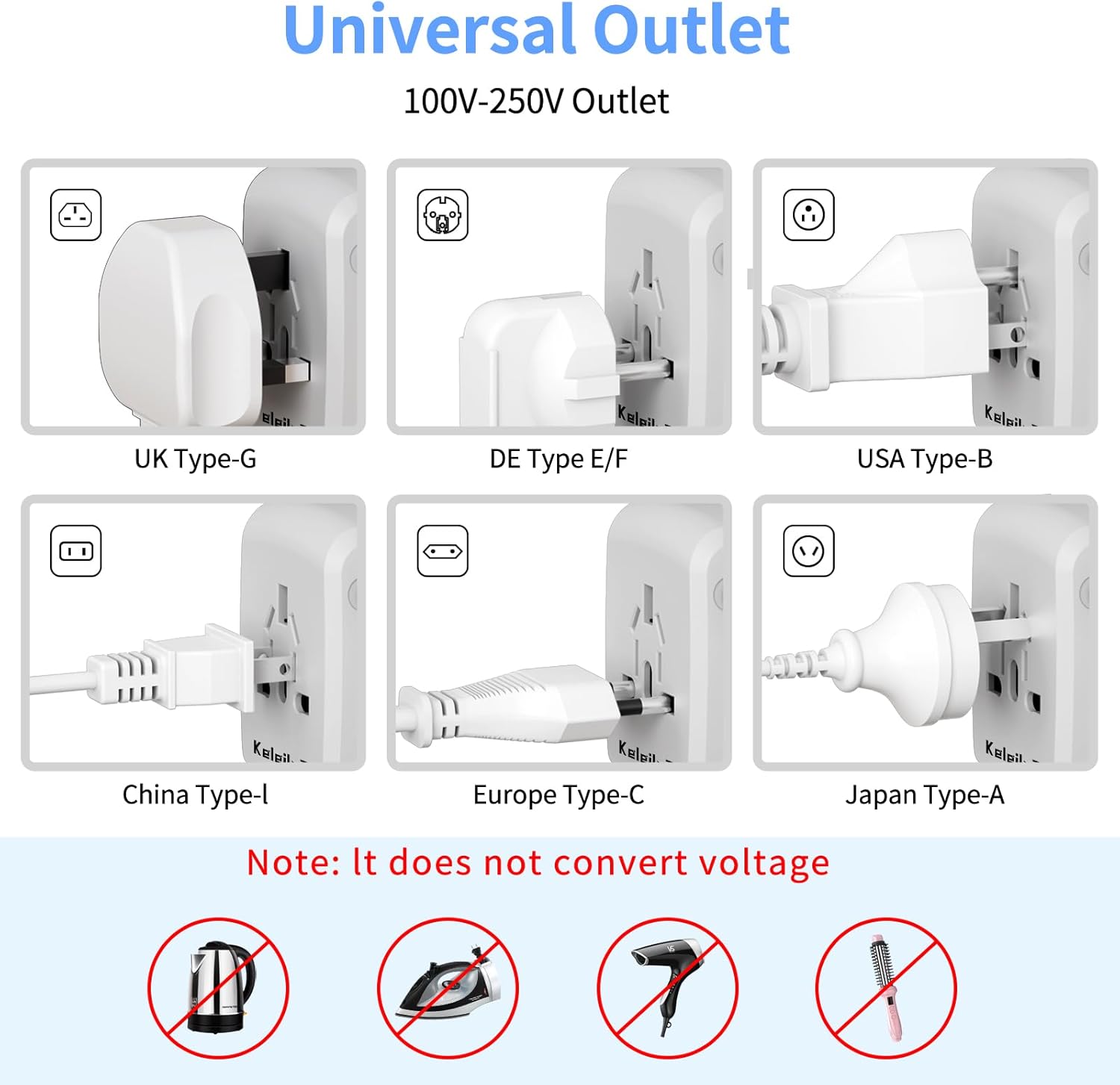- note: this is not a voltage converter, can not be converted to voltage,INTERNATIONAL PLUG ADAPTERS -- Adapter covers over 150 countries, with US/EU/UK/AUS plugs and Powerful Four Smart Ports, it can be worked in Canada, Mexico, Brazil, central America, South America, Europe, Asia, the Middle East and so on