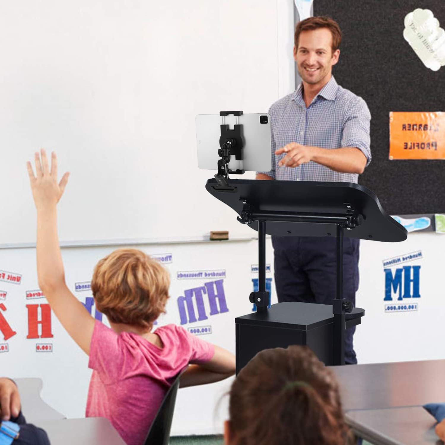 - 【Mount Anywhere】:Tablet holder maximum clamped thickness is 50mm/1.96 inch,loads weight is 1.43 lbs/650 g,widespread application for door,drawing shelf,table,wooden baffle,metal rack,office desk,railing,glass.No any tools to drill holes,install and uninstall is simple.