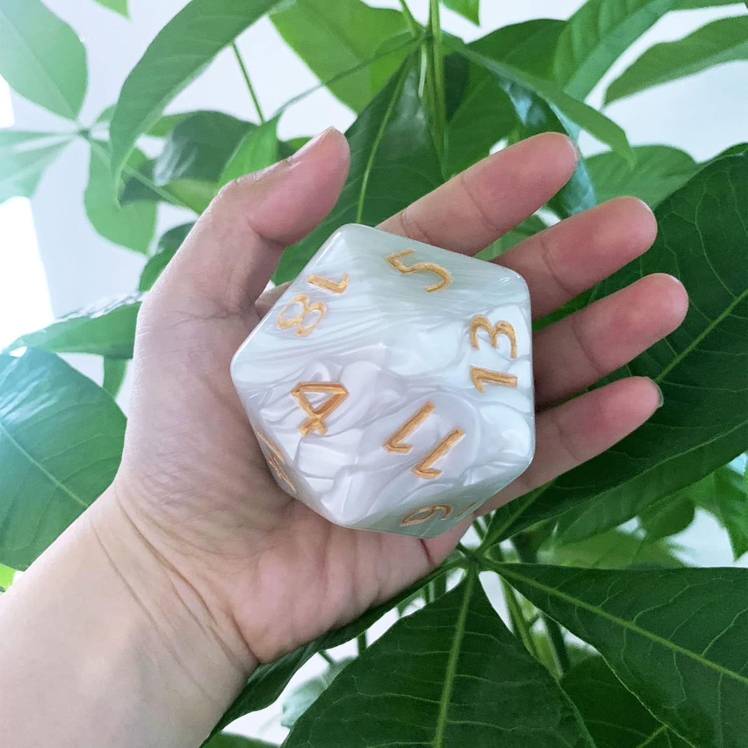 20 Sided DND Dice,D20 Giant Polyhedral Dice,55mm Titan Large Pearl Color D20 Dice,20 Sided Cube D&D Dice Set for Dungeons and Dragons, RPG, MTG Table Games(White Pearl)