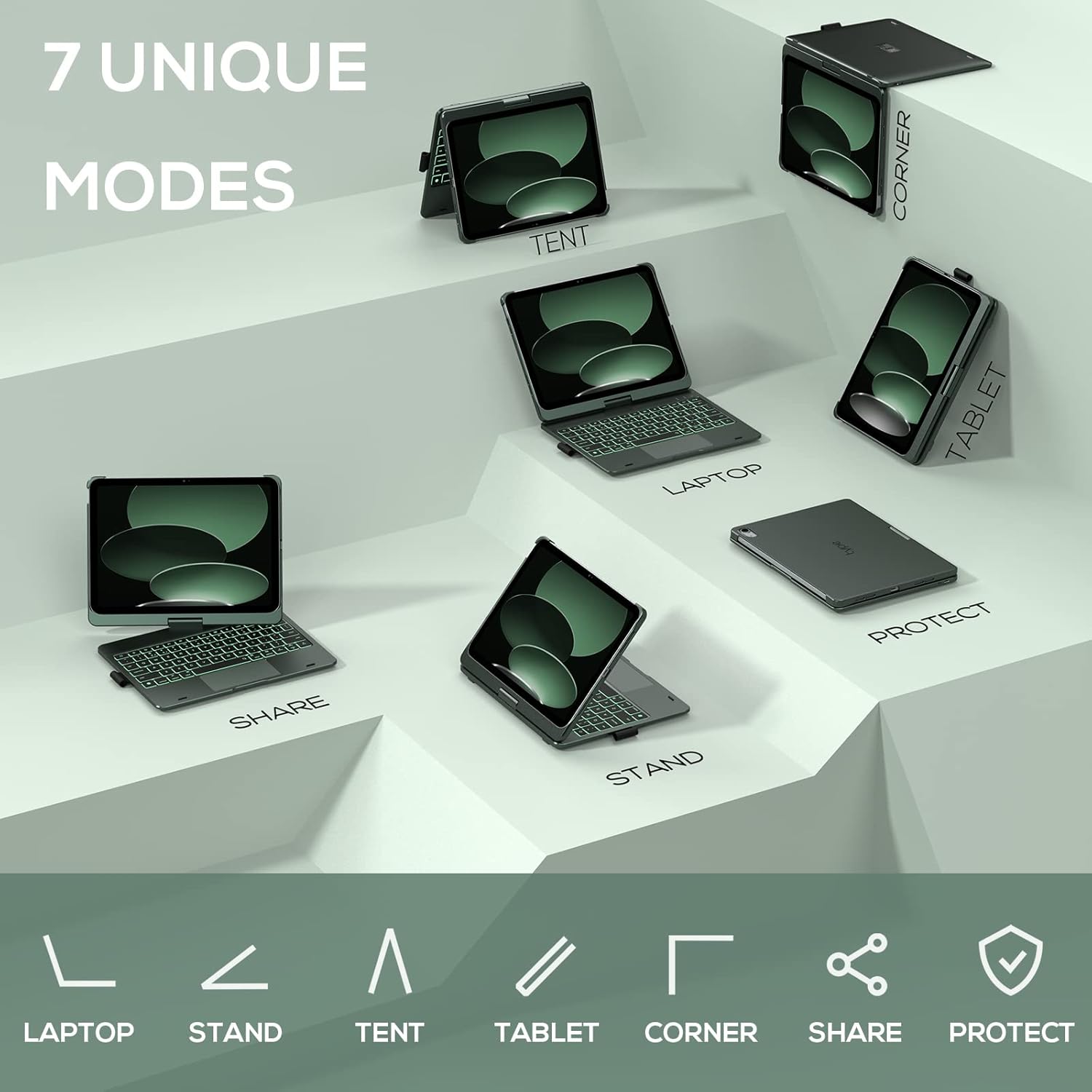 - 7 Use Modes - A patented 360° hinge (20,006-cycle stress tested) lets you comfortably use iPad for any task from typing notes to watching videos to using iPad in its native form in tablet mode.