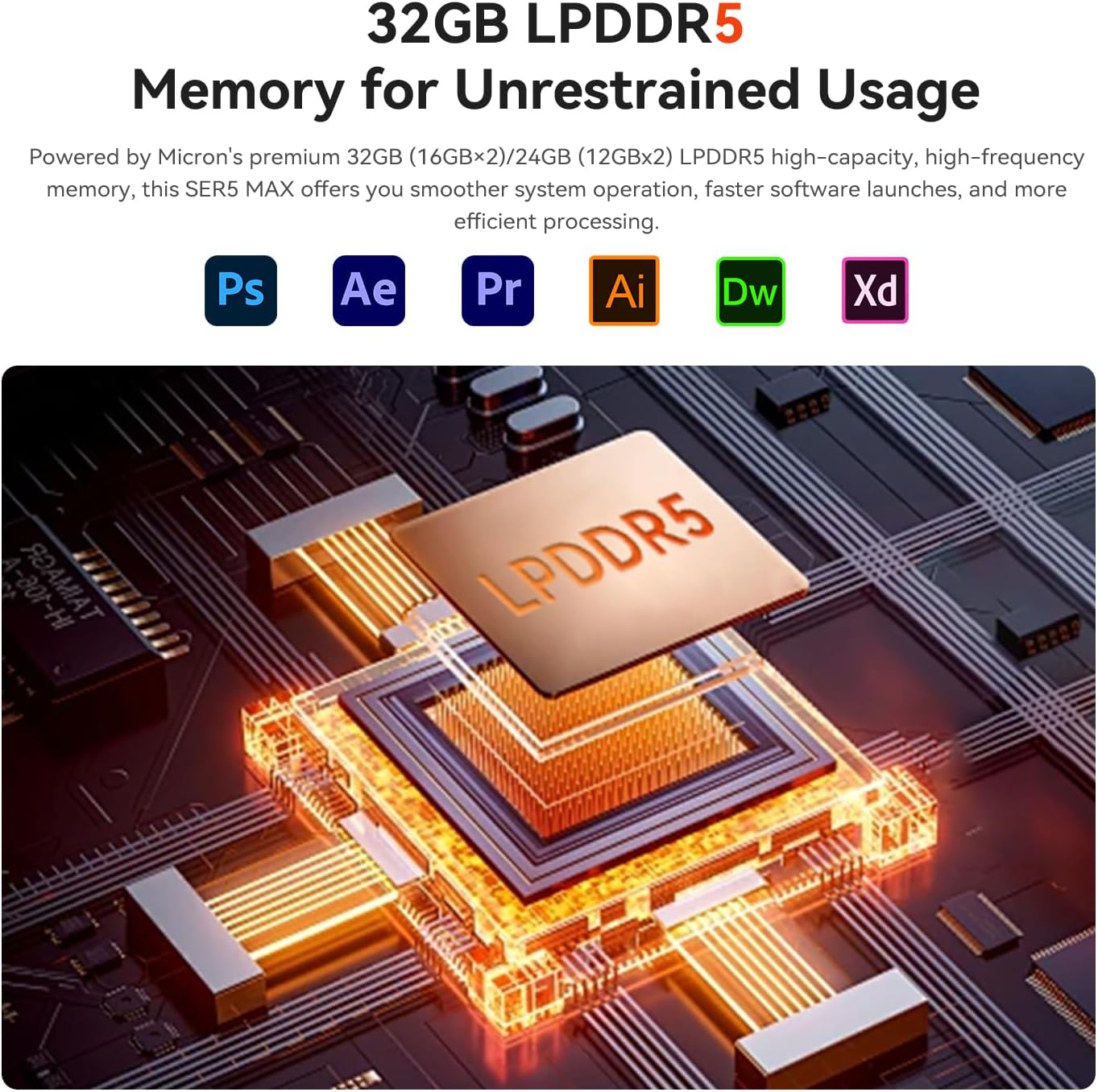 - 【32GB LPDDR5 RAM & 1TB SSD】The TRIGKEY Ryzen 7 S6 Mini PC comes with 2 accessible memory slots that can be upgraded up to 32 GB (2 x 16 GB) of dual-channel LPDDR5 RAM. The Mini Computer also has a 1TB M.2 PCIe NVMe 2280 SSD, dual SSD slots, max 2*4TB as per your needs.