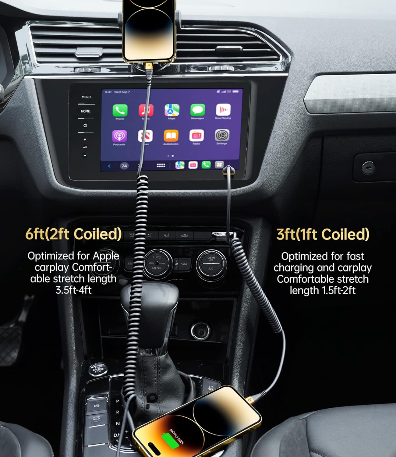 - ăPerfectly Compatible with Apple Devicesă Compatible with iPhone 14/ 14 pro Max /14 pro/14 Plus, iPhone 13 Pro Max/13 Pro/13 Mini, iPhone 12 Pro Max/12 Pro/12 / 12 Mini, iPhone 11 Pro Max/11 Pro/11, iPhone XS Max/XS/ XR / X, iPhone 8 / 8 Plus, iPhone 7/7 Plus, iPhone 6S Plus/6S/6 Plus/ 6, iPhone 5S/5C/5/SE, iPad/AirPods and more.Also compatible with CarPlay.The Apple CarPlay cable connection is stable, so please feel free to use it.