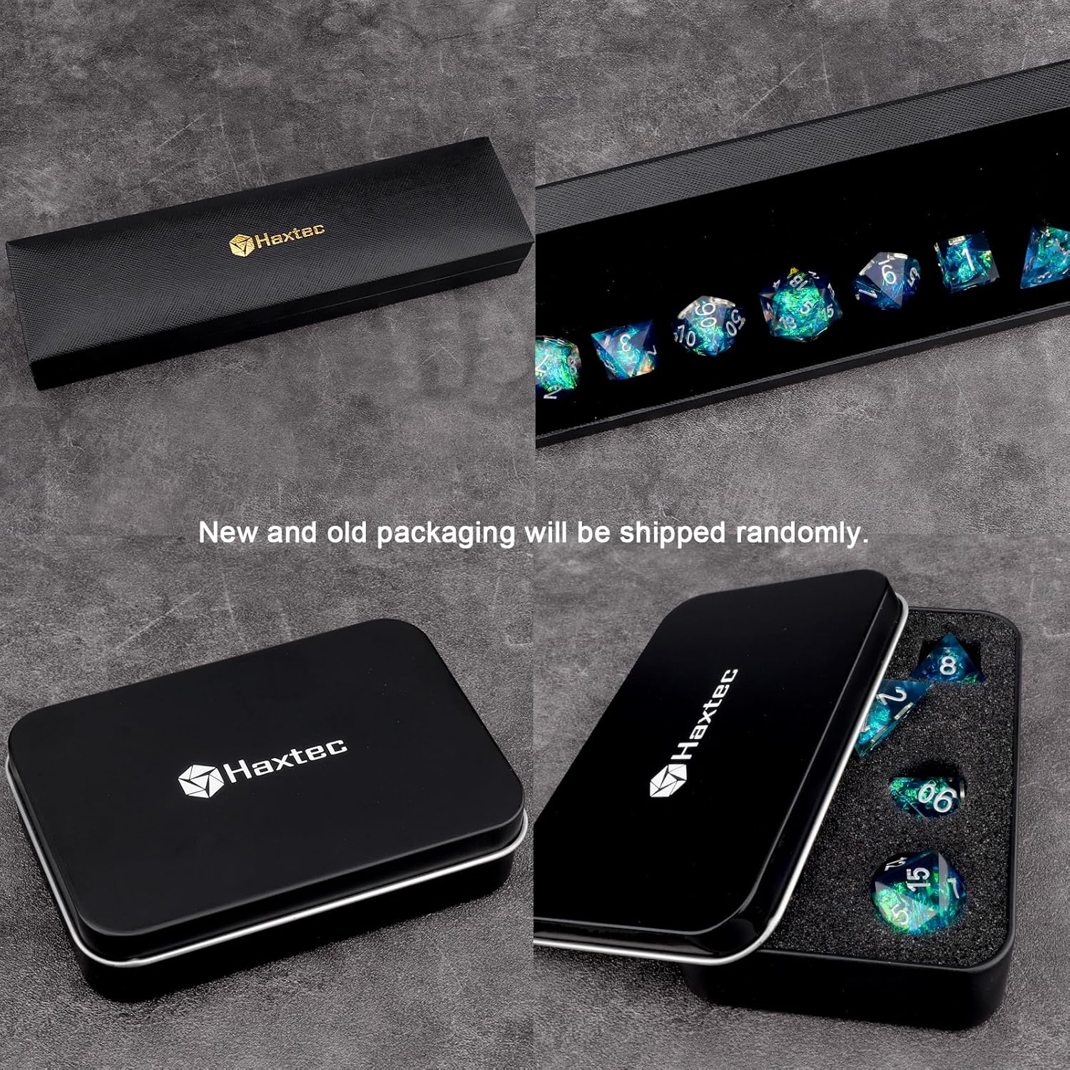 Haxtec DND Dice Set Sharp Edge Resin Dice with Dice Case Blue D&D Polyhedral Dice for TTRPGs Compatible with Dungeons and Dragons Galaxy Series