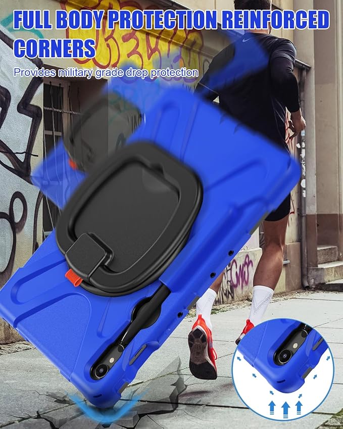 BRAECN Rugged Case for Galaxy Tab S10 Lite/S10 FE/S9 FE 10.9 Inch & S9/S8/S7 11 Inch 2025/2023 SM-X400/X520/X510/X710 | Heavy Duty Silicone Cover with Kickstand, Shoulder Strap & S Pen Holder, Blue