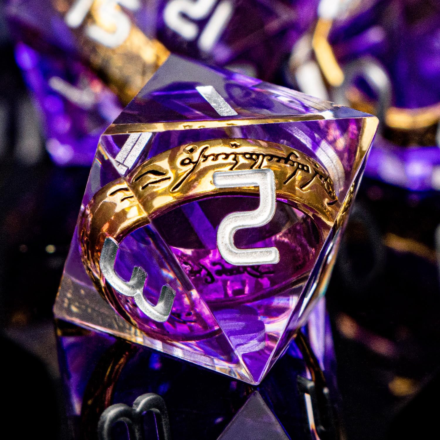 Magic Golden Ring DND Dice Set with Box, Purple Sharp Edge Handmade Lord D and D Polyhedral Dice for use with D&D Tabletop Games RPG, D20 D12 D10 D8 D6 D4