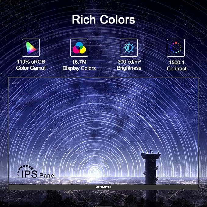 SANSUI 27 Inch Monitor, IPS 120Hz Computer Monitor Full HD 1920 x 1080P with HDMI DP Interfaces, Eye Care, Frameless, 100 x 100mm VESA Mountable (HDMI Cable Included)