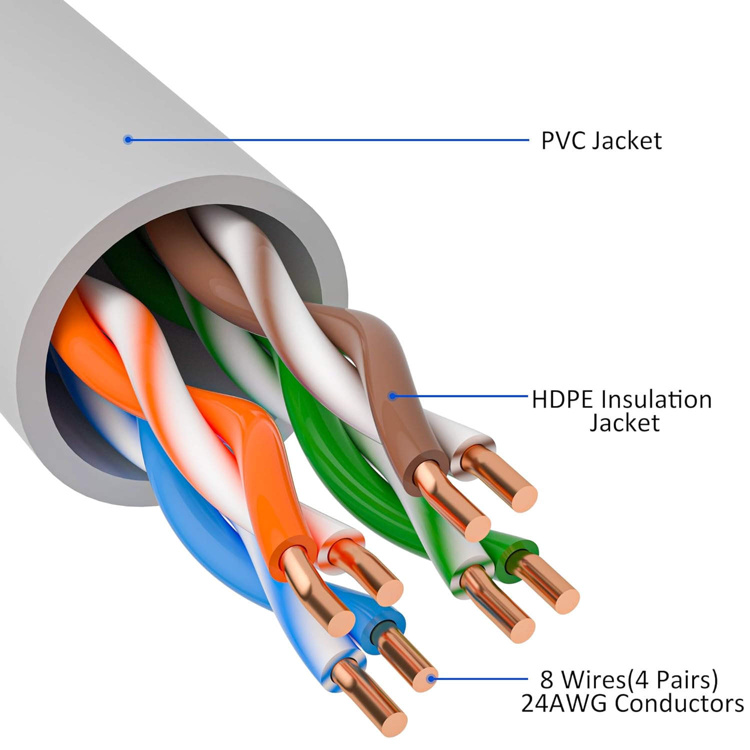 - 【Extremely Cost-effective】: Our Cat5e cables use the price of Cat5, but have higher bandwidth and faster speed. In addition, we offer you 15 free white cable ties, allowing you to easily manage your network cables or other cables.