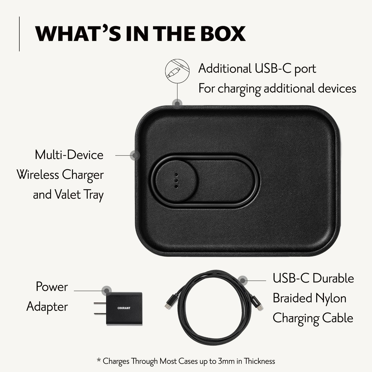 Courant MAG:3 Classics Charger and Tray - Italian Leather, Multi-Device Charger Compatible with MagSafe iPhones 16, 15, 14, 13, 12 or Wireless AirPod Cases (Black)