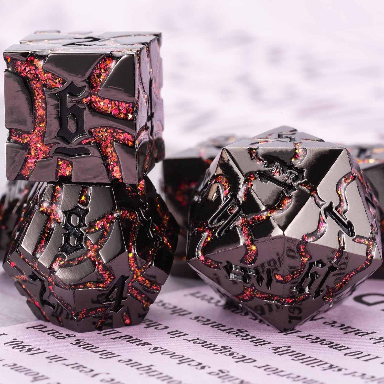 - Excellent Craftsmanship - metal dice Crackle Design design, the dice is having the cool engraving. All of these elements are carved on the metal dnd dice set with exquisite craftsmanship