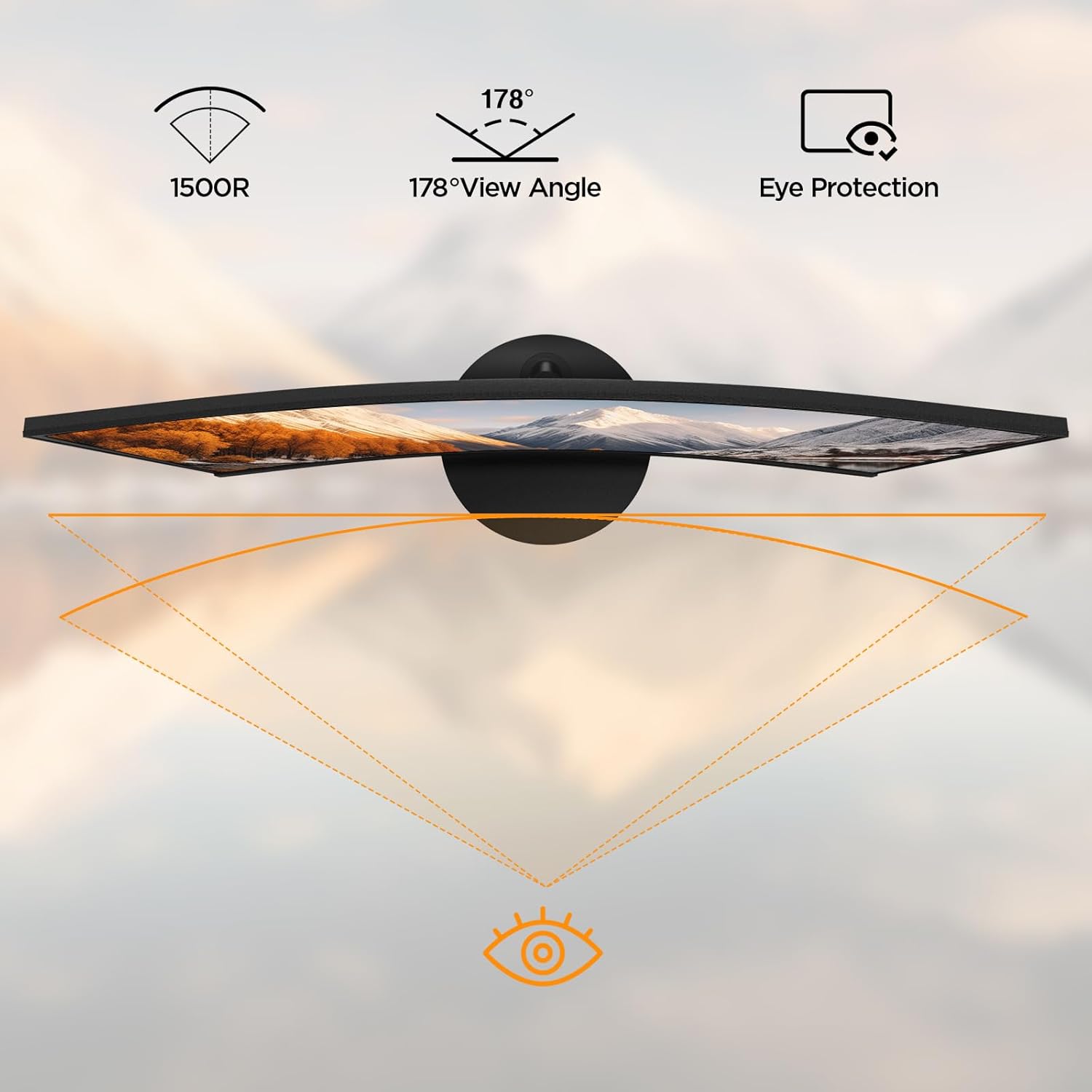 - R1500 CURVED MONITOR: KOORUI 24 inch computer monitor delivers a revolutionary visual experience with a leading 1500R screen curvature as the images appear to wrap around you for an in depth, immersive experience, warm tip: this monitor do not support VESA mount.