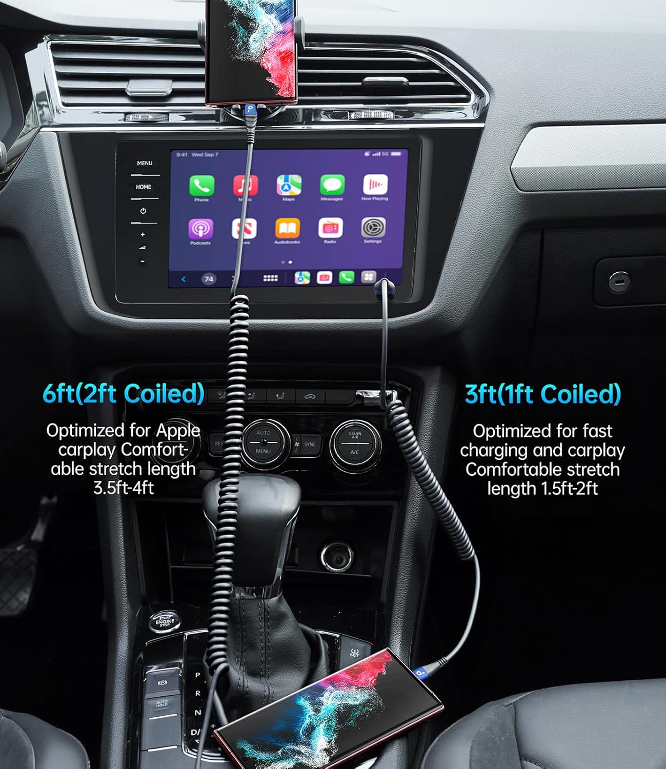 - Elastic Coiled USB C Cable Made for Car: The USB Type-C cable is designed with stretchable, no tangle, no knot, and does not take up space. This coiled USB C charging cable is made of upgraded high quality PU material, which is flexible, easy to stretch, effortless, quick to rebound and not easily deformed.