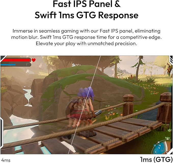 - Lightening-Fast 1ms Response time - See your actions come to life instantly with a remarkable 1ms response time. No more frustrating ghosting or trailing, just pure, unadulterated speed that gives you the edge in competitive gaming.