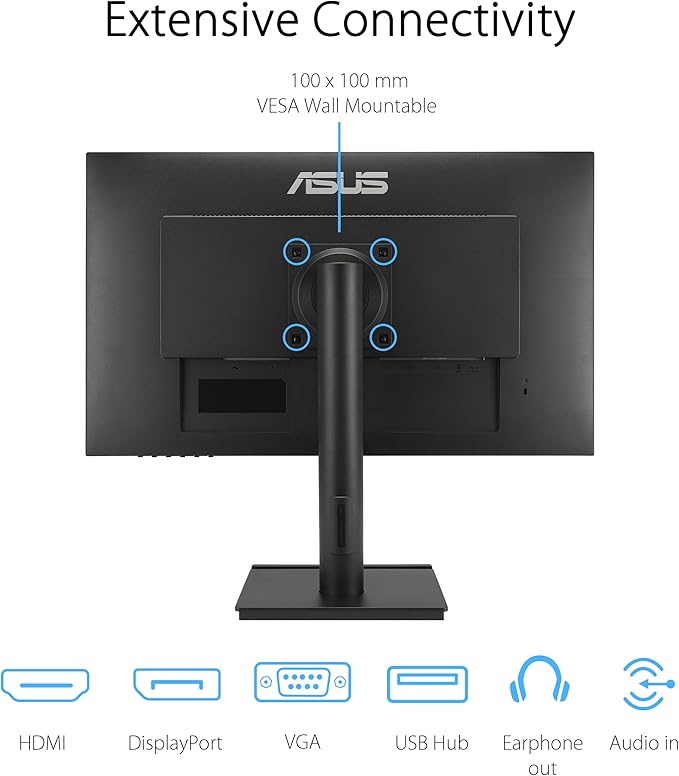 ASUS 27” 1080P Business Monitor (VA27DQFS) - IPS, 100Hz, 1ms, Adaptive-Sync, HDMI, DisplayPort, VGA, for Working and Gaming, Ergo Design, Blue Light Filter, Flicker Free, 3 yr Warranty TAA Compliant
