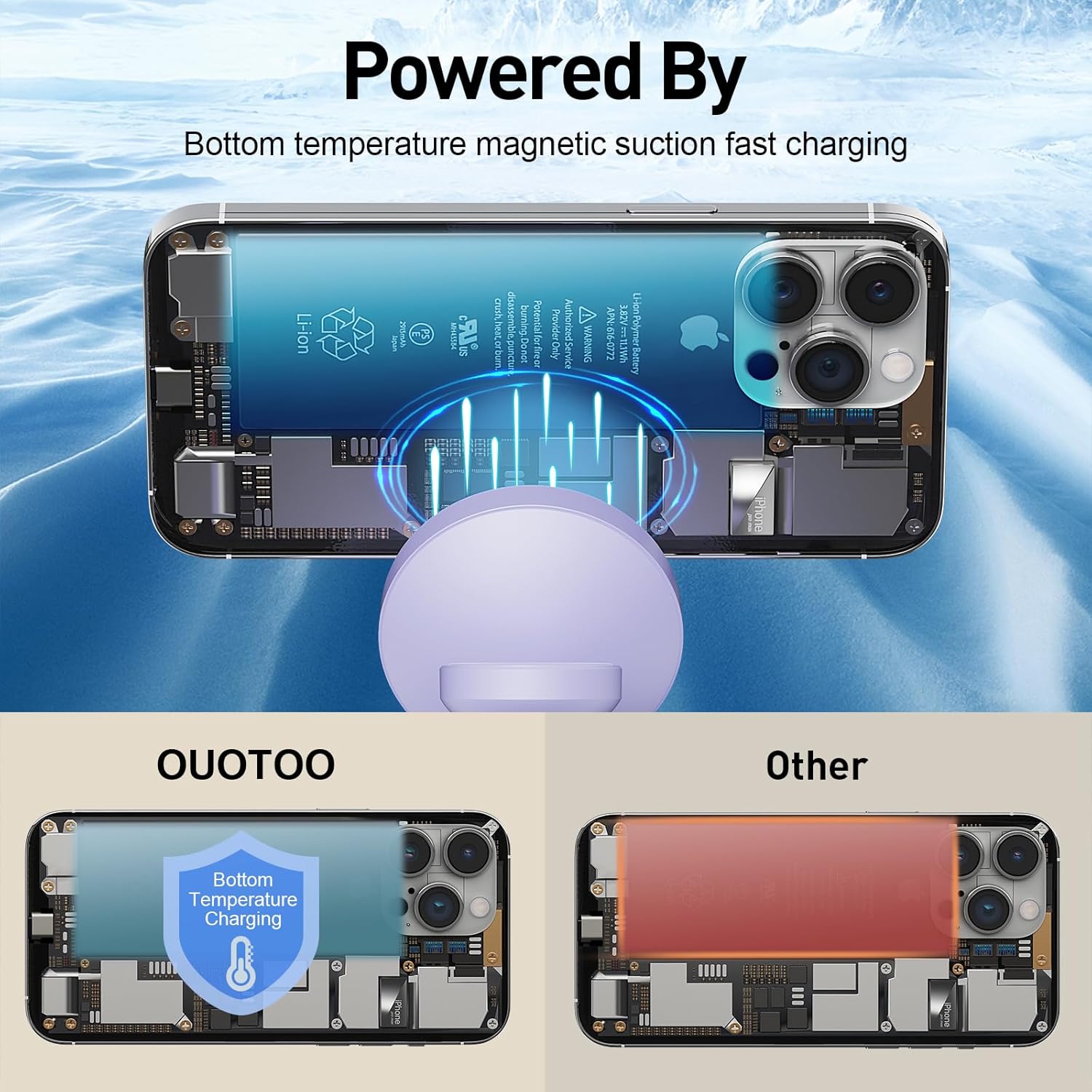 - 【Addressing overheating issues】:The product is made by combining electroplating technology and ABS environmentally friendly materials, making the charger bracket more stable and sturdy. Recently, the R&D department has made new breakthroughs in cooling materials and technology, which improve stability by more than 45%, increase charging speed by 18%, and lower the temperature by 37°F