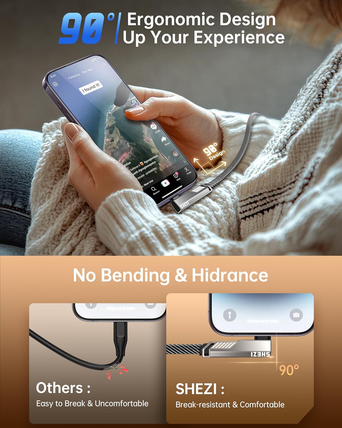 - Innovative 90-Degree Design: Enjoy comfortable device use while charging with our right-angle iphone cable, perfect for gaming, videos, or working on the go. Say goodbye to awkward bends! It is the ultimate accessory for a seamless experience