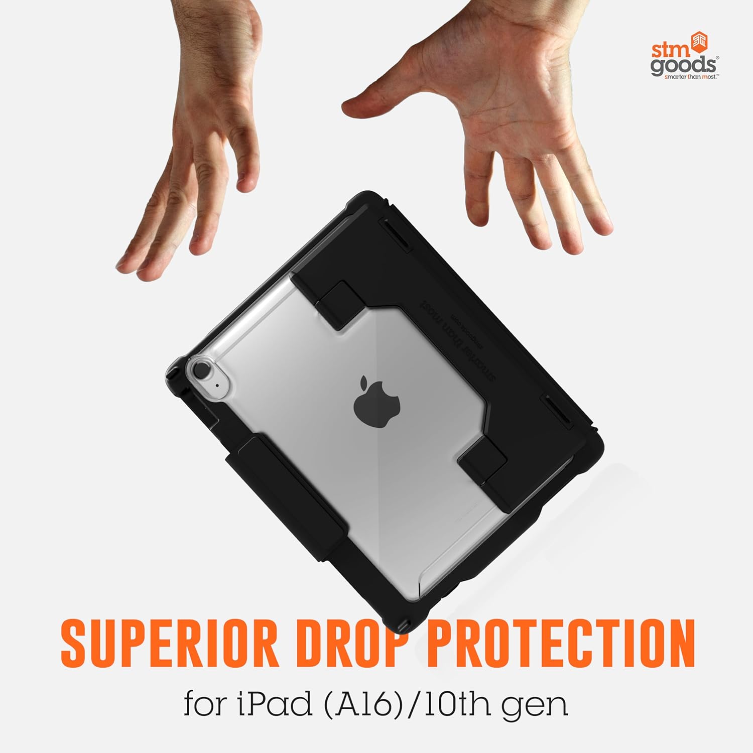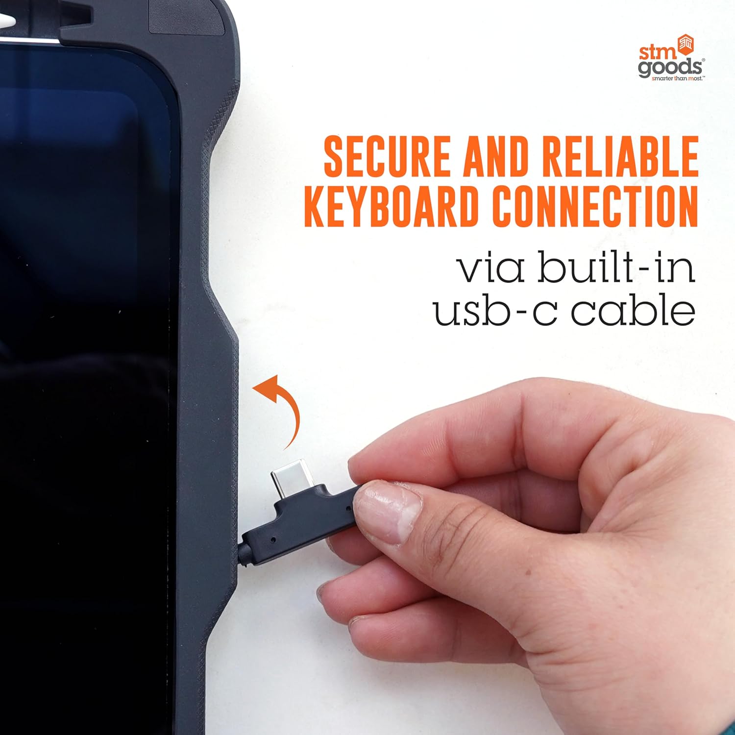 STM Goods Dux Keyboard Trackpad USB-C for iPad 10th, USB-C Connected Keyboard - Rugged, Rubberized Drop Protection - Integrated Trackpad, Storage for Apple Pencil Gen 1 or Logitech Crayon - Black
