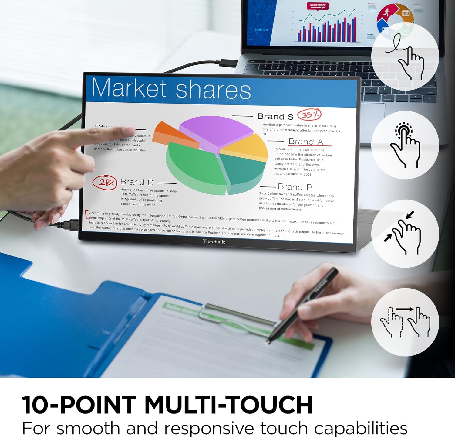 - ADVANCED TOUCH SCREEN: This 10-point touch screen monitor makes swiping, writing, and annotating smooth and natural