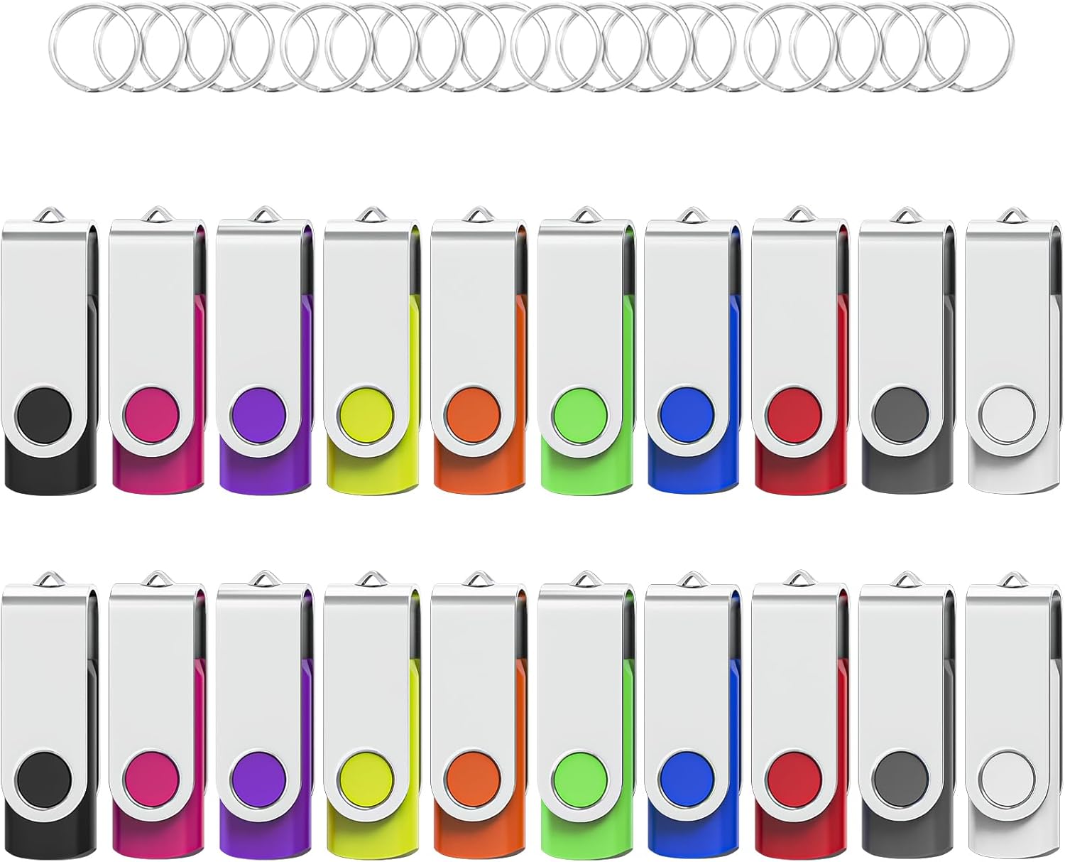 Flash Drives 128MB 20 Pack with Keychains, Swivel USB 2.0 Thumb Drives Bulk USB Drive Memory Stick Thumb Drives Pack (Mixcolors)