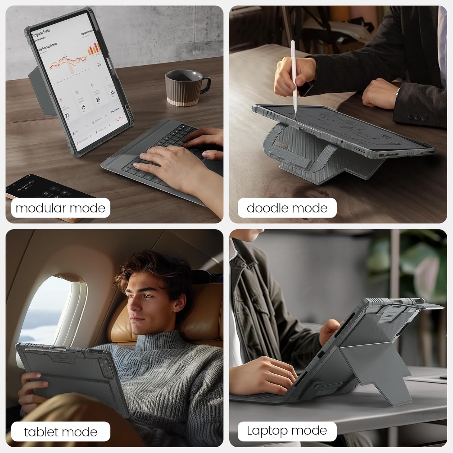 - ăDetachable Keyboard and Adjustable KickstandăDetachable while the case STILL ON,flexible kickstand offers various of angle at your needs. When typing isn't needed, detach the keyboard. Stable Stand for you to comfortable used while watching video or picture,screen writing or using it on your lap.