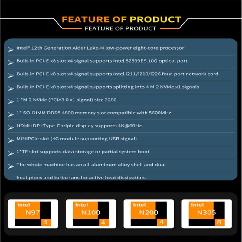 CWWK Intel Alder Lake N100(4C/4T Up to 3.4GHz)/N305(8C/8T Up to 3.8GHz) Dual SFP+10GbE Mini PC|4xIntel I226-V 2.5GbE |DDR5 Memory|PCI-E x4|HDMI+DP+Type-C (10 Gigabit N100, 32G RAM 256G SSD)