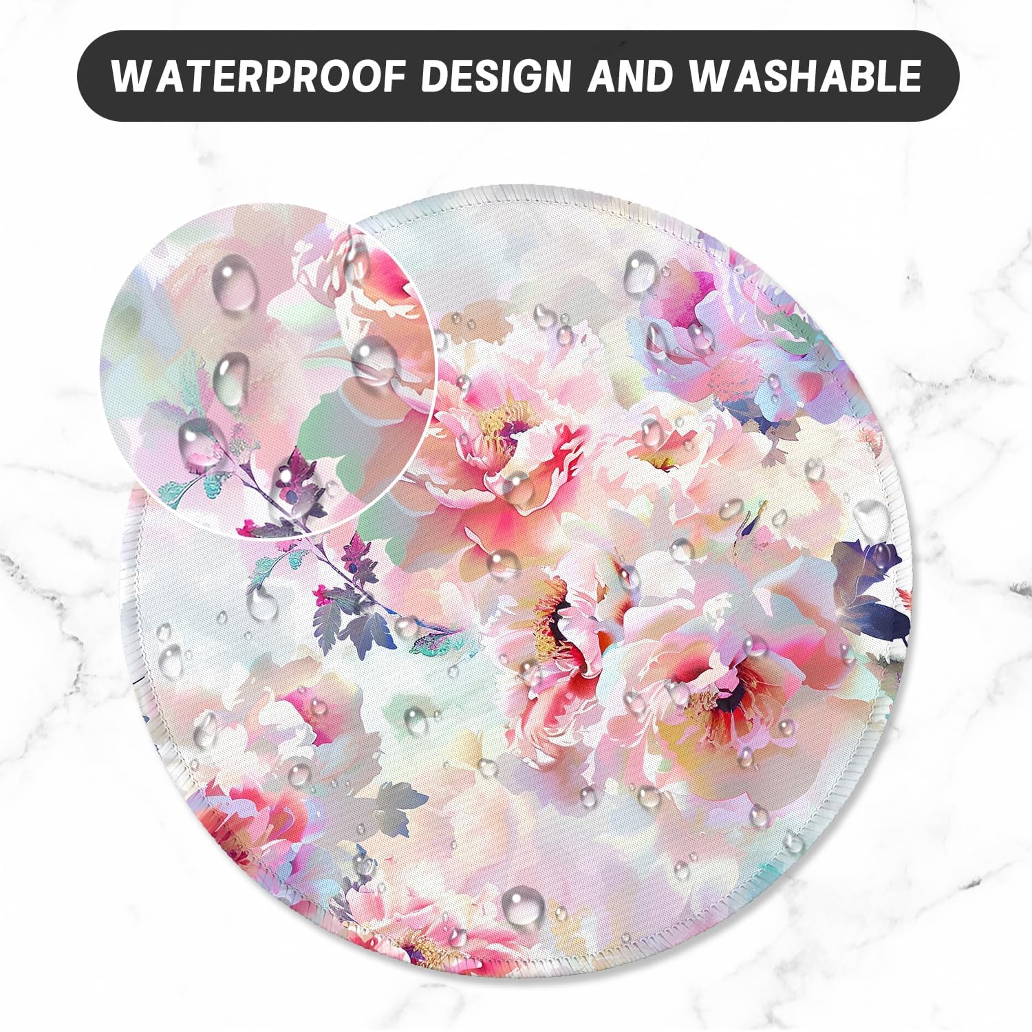 ITNRSIIET Round Mouse Pad with Stitched Edge Premium-Textured Waterproof Non-Slip Rubber Base Desktop Protection Mat Diameter 8.7 inches, Beautiful Flowers