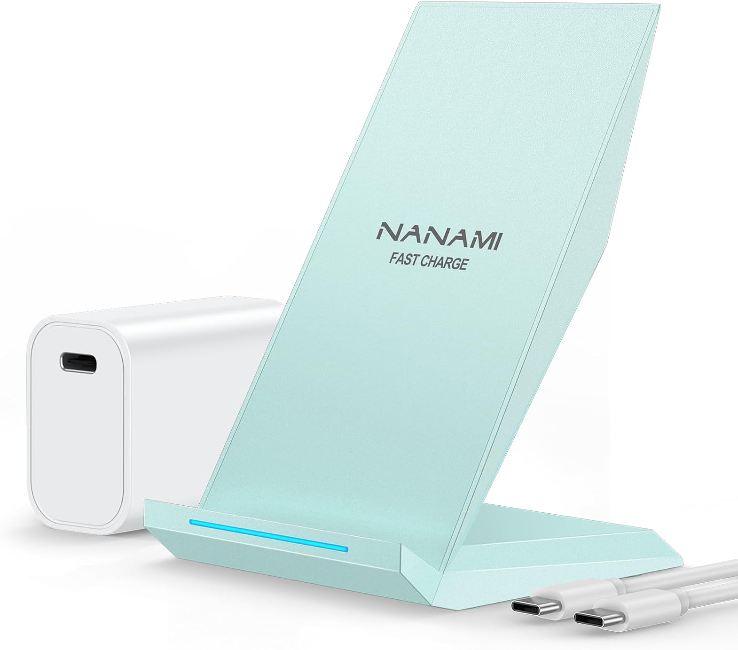 NANAMI Fast Wireless Charger, Qi Certified Charging Stand[with 20W PD Charger] Compatible iPhone 16/15/14/13/12/12, Desktop Charger Stand for Samsung Galaxy S25/S25+/S25 UltraS24/S23/S22/S21/S20