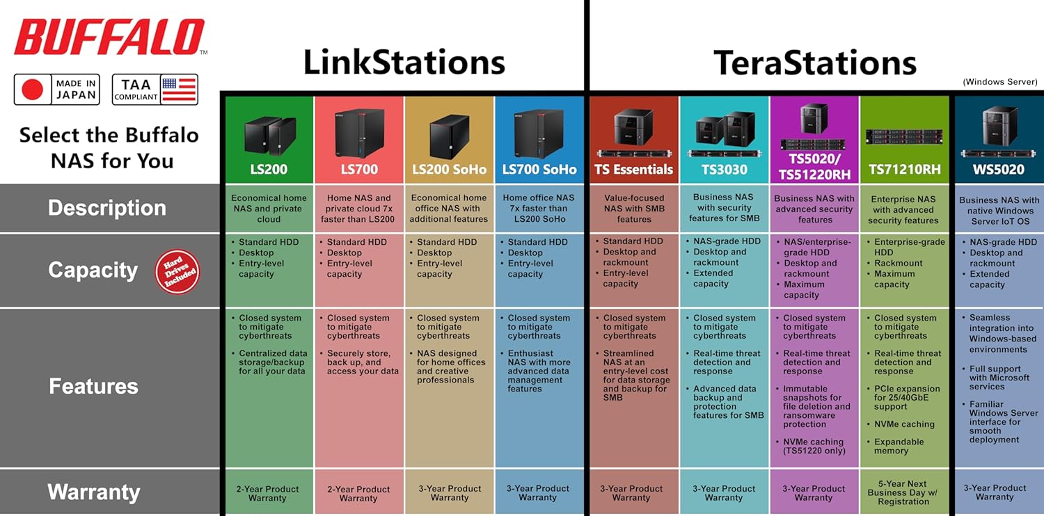 - 24/7 Peace of Mind Included – 3-year warranty with optional warranty services, along with Buffalo’s award-winning 24/7 US-based Live Phone Support and data recovery service.
